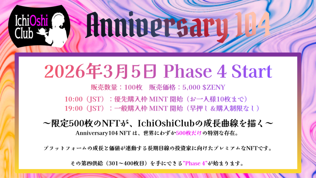 2026年3月5日 Anniversary104 NFT 販売会(Phase4) を開催いたします。
