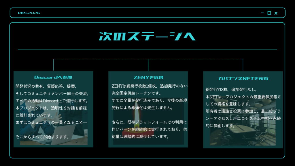 まずはDiscordに参加し、開発の最前線やコミュニティの議論に触れながら、このプロジェクトの可能性をぜひご自身の目で確かめてください。
