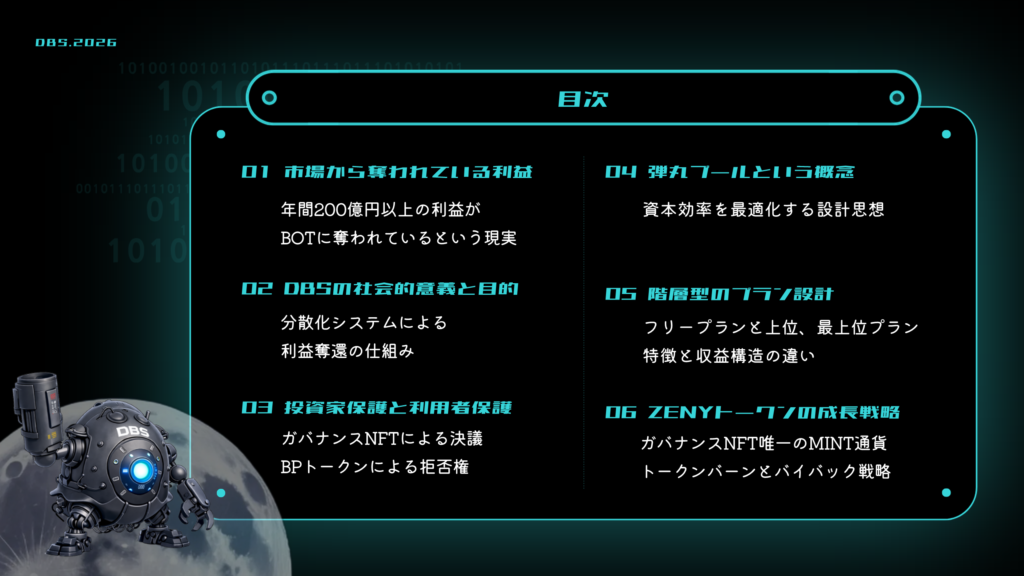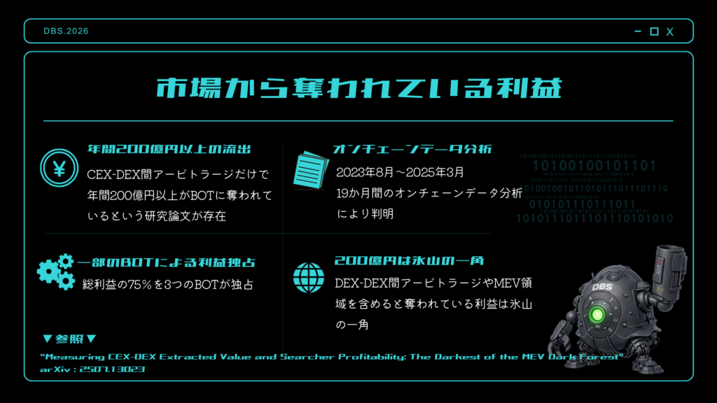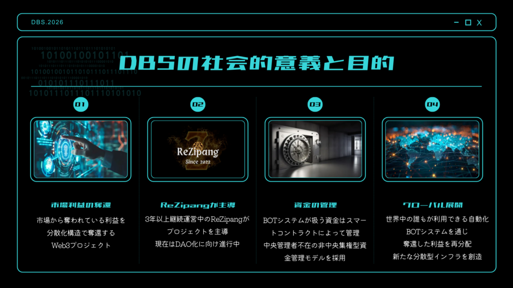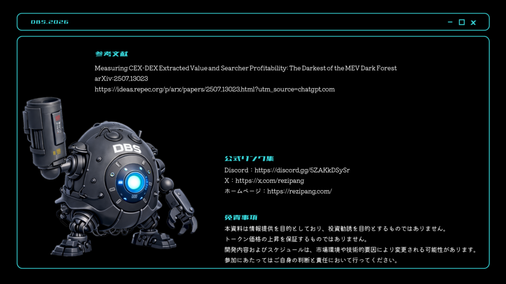 分散型BOTシステム(DBS)は、コミュニティで世界最速クラスのBOTを開発・共有し、MEVとアービトラージを民主化する日本発のWebプロジェクトです。