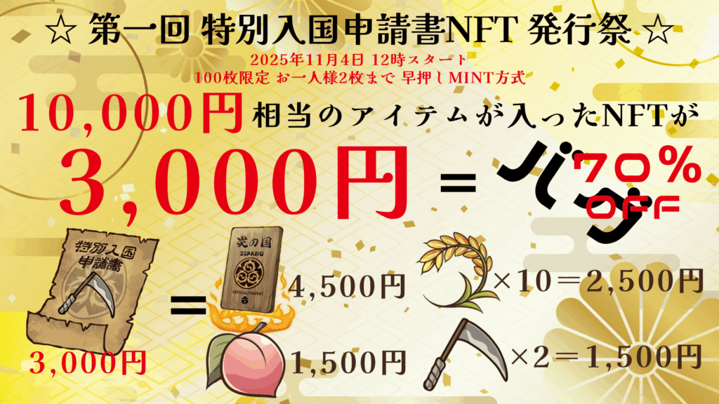 第一回 特別入国申請書NFT 発行祭 を開催致します!