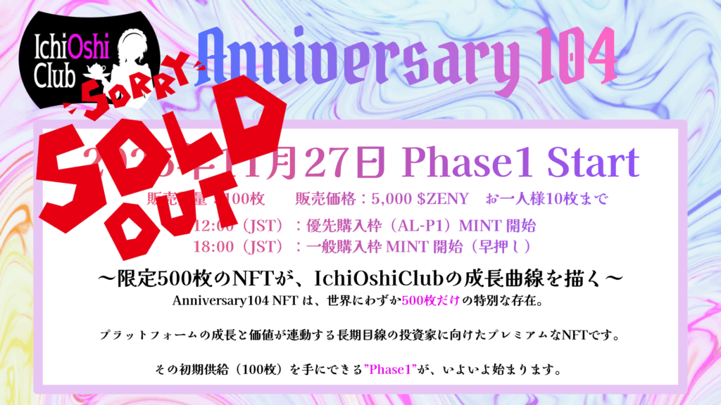 ⚡ Anniversary104 の販売会フェーズ5 終了まで定期的に実施!